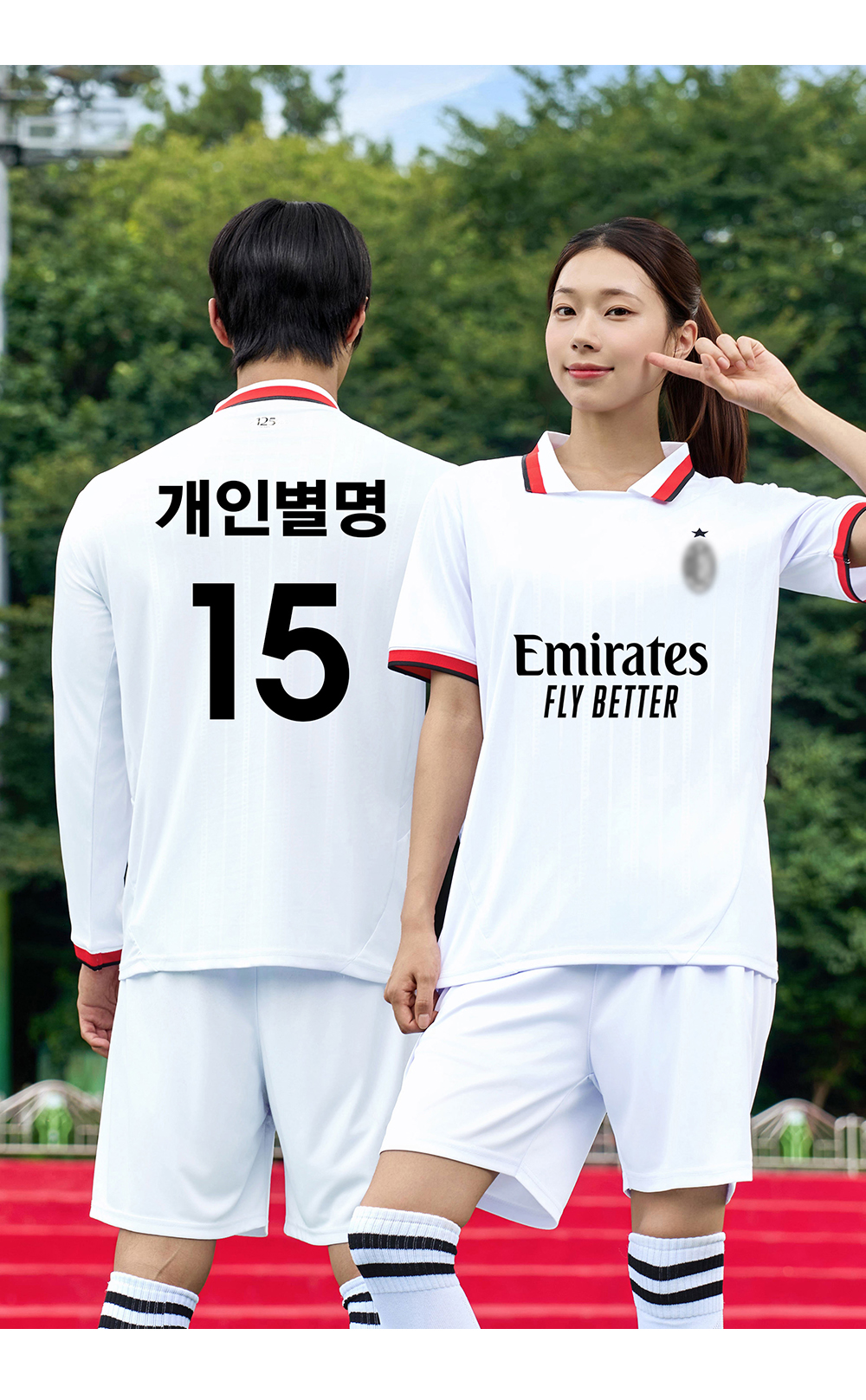 === 상의 === 축구복상의 긴팔 : 12,000원 축구복상의 반팔 : 12,000원 === 하의 === 축구복하의(바지만 구매불가) 반바지 : 6,000원 === 인쇄 === [뒷면] 축구복(개인번호) : 3,000원 [뒷면] 축구복(개인별명) : 2,000원 |